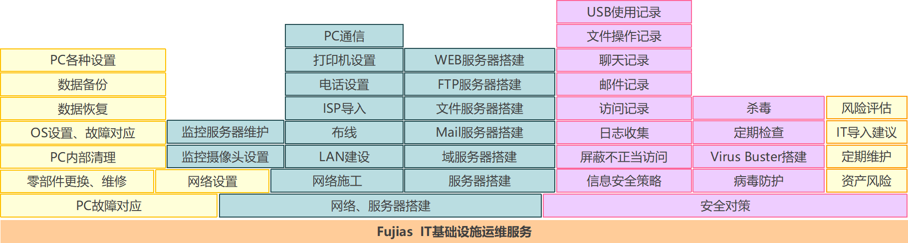 富佳為顧客提供全方位的“IT基礎設施運用維護”服務,對顧客的各種IT故障做出迅速、準確的對應,及時為顧客解決問題,解決顧客的各種需求。基于豐富經驗和精湛技術,力求避免顧客因IT故障而帶來的業務損失。